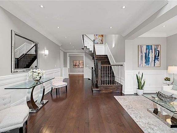 Welcome to 3471 Yale Road, a truly exceptional custom-built luxury residence ideally situated on a beautifully landscaped corner lot in one of Mississauga's most desirable neighbourhoods. Just 9 years new, this refined home offers over 5,000 sqft of finished living space, where timeless elegance meets modern comfort & thoughtful design. From the moment you arrive, you're greeted by striking curb appeal, brick & stone exterior, a double interlocking driveway, & a gracious covered front porch framed by meticulous landscaping. Inside, a soaring 20-foot open-to-above foyer sets a grand tone, while rich hardwood floors, intricate wainscotting, crown moulding, & expansive windows carry warmth & light throughout. The heart of the home is a designer chef's kit, complete w/ premium appliances, quartz countertops, pot filler, wine fridge, & an oversized island built for gathering. Walk out to a fully fenced, pool-sized backyard featuring a covered patio w/ skylights, built-in speakers, & beautifully landscaped gardens - an outdoor sanctuary for entertaining & everyday enjoyment. The main level also offers elegant formal living & dining rms, a cozy family rm w/ gas fp, a private office, & a custom laundry/mudroom w/ direct garage access. Upstairs, the primary suite is a true retreat w/ double-door entry, recessed ceiling, his-&-hers walk-in closets, & a spa-inspired ensuite w/ soaker tub, chandelier, & oversized glass shower. Three additional bedrms offer hardwood floors, custom closets, & access to beautifully finished bathrms, including a second ensuite & 4-pc bath. The fully finished lower level is designed w/ versatility - offering a sprawling rec rm, second gas fpl, wet bar, full kit, 3-pc bath, & laundry. W/ a separate entrance, this level is ideal for multi-generational living, a nanny suite, or future rental income. Every element of 3471 Yale Road has been thoughtfully curated for comfort, sophistication, & lasting value. This is a home that elevates every moment.