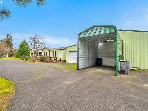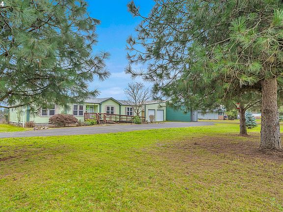 Welcome to this charming one-story manufactured home, perfectly situated on a spacious 1.75 acre corner lot. As you approach the property, a sense of tranquility washes over you, surrounded by the natural beauty of the expansive property. Step inside the front entrance, and you'll immediately notice the spaciousness and open layout of this delightful home. The well-designed floor plan encompasses both functionality and comfort, providing an ideal space for everyday living or hosting gatherings. The heart of the home is the inviting living area. The cozy ambiance is enhanced by a warm fireplace, creating a perfect spot for relaxation during cooler evenings. The adjacent kitchen boasts ample counter space and modern appliances, making meal preparation an effortless task. A convenient breakfast bar provides additional seating and serves as a central gathering point for family and friends. The home features three spacious bedrooms, each offering comfort and privacy. The primary bedroom is a true retreat, with its generous proportions and an en-suite bathroom featuring luxurious amenities such as a soaking tub and a separate shower. The remaining bedrooms are ideal for guests or can easily be converted into home offices or hobby rooms to suit your needs. Outside, the possibilities are endless on the expansive lot. There is a 2 bay shop with an extra work room located in it along with an attached shop that has a space for an RV and a loft for added storage. Mature fruit trees along with fir trees add beauty to the landscaped yard, offering plenty of space for outdoor activities and potential for gardening. This property enjoys dual street frontages, providing additional convenience and ample parking options. Conveniently located near amenities, stores, and schools, this manufactured home promises an idyllic slice of country living while still being within reach of city conveniences. Come experience the tranquility and limitless potential of this home today!