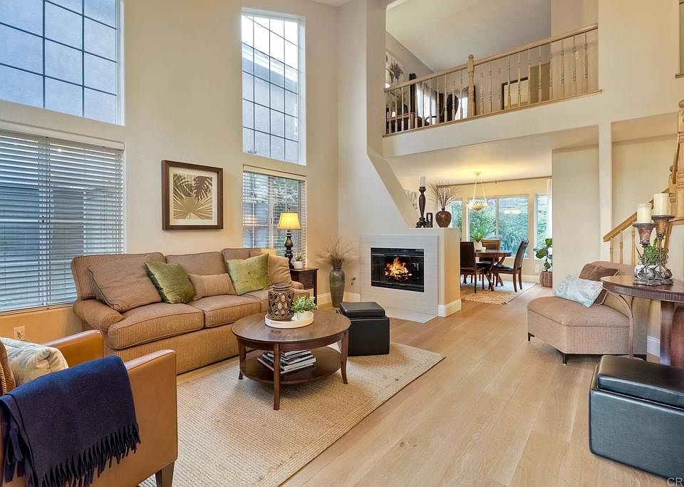 Lowest priced/sqft AND remodeled SFR in 92009!! Bring all offers!! Welcome home to this gorgeous, turn key house situated in the coveted Promenade community in Carlsbad. As you enter the home, you'll notice the warm REAL wood flooring that flows seamlessly throughout the downstairs. High vaulted ceilings and large windows allow tons of natural light to flood in. Between the living room and dining room there is a dual sided fireplace with Quartzite surround, creating a sense of warmth and comfort. As you enter the kitchen, you'll be impressed with a newly renovated kitchen featuring on trend Quartzite countertops, white shaker soft close cabinets with Emtek hardware, Samsung Stainless steel appliances and a Kraus deep sink overlooking your backyard. Arguably the best floor plan in the community, this 4 bedroom, 3 bath home currently uses the optional 4th bedroom as an office, but can easily be made into a closed 4th bedroom. As you walk upstairs you'll find soft Shaw carpet in a tasteful neutral tone. The generous sized Primary bedroom has a bonus area that can be used as another office space or perhaps a reading nook? The en-suite bathroom has been updated with dual sinks, a soaking tub with handheld spray and a custom glass door surround. Two more ample sized bedrooms and another full bathroom are down the hall. Once back downstairs, you can enter your private backyard through your newer French doors. Easy to maintain yard with Wifi Smart watering system and drip/spray irrigation as well as Wifi enabled light switches. All the big ticket items have already been taken care of for you including a new roof with two layers of underlayment, Solar energy ready Slimline AC unit, new water heater and epoxy flooring in the garage. All you need to do is move in! The Promenade is a special community that includes a pool, tot lot, dog park and a myriad of community events throughout the year. All of this while being just minutes from stunning beaches, amazing restaurants and shopping--this is Socal living at it's finest!