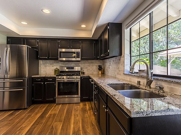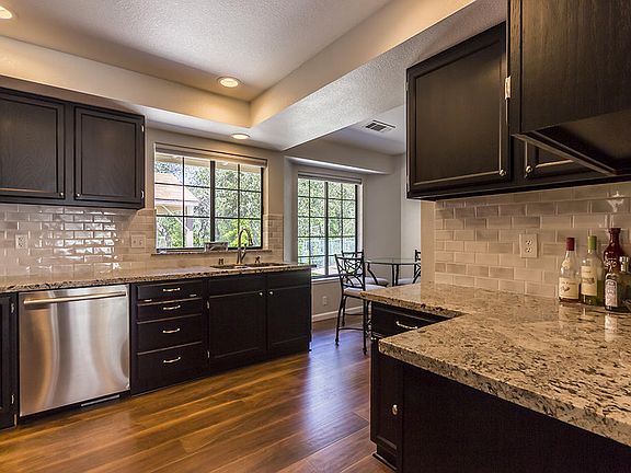 Georgeous creek front home! Beautiful home with many many upgrades, gleaming wood/laminate floors, dark rich cabinets, granite kitchen, tile back splash with stainless steel appliances! Separate living and family rooms with vaulted ceilings,romantic brick hearth and gas fireplace.Granite bathroom counters and indoor laundry room.Large covered patio,and separate workshop/artist/yoga/workout studio