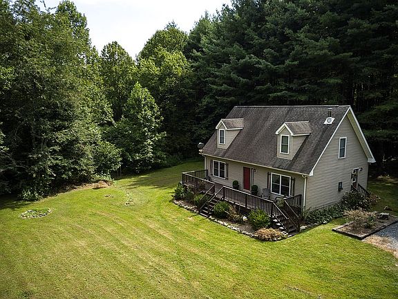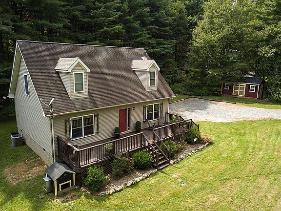 This private Cape Cod is centrally located in the desired Parkway School district. Only 15 minutes from Boone, 25 minutes from West Jefferson and 25 minutes from North Wilkesboro. The quiet, flat 3 acres can be used for cookouts, gardening, or just relaxing by the creek. The master bedroom is located on the main level with newly renovated master ensuite boasting custom tile shower, tile floors, new vanity and fixtures. The kitchen and half bath were renovated in 2011. The gas oven range and refrigerator are only 2 years old. The dining area has a new large sliding glass door which looks out to the private back yard. Upstairs are two large bedrooms with a shared full bath. This house has lots of storage with large attic space, an upstairs closet that could be used as a large pantry or small office, and large outbuilding with work bench, shelving and storage loft. Custom play area and two tree houses are great for kids or grandkids. This is a perfect piece of mountain paradise! The laundry area and half bath were renovated in 2017 and include shiplap, custom built vanity and mirror, new light fixtures, a vessel farm sink and Brazilian wood vanity top. Three gas lines were run to the expansive front porch to supply a gas grill, gas fire table, and gas tower heater in 2019. A rustic bonfire pit was constructed creek side with large rocks found on the property in 2017 as well. There is a garden area with an electric fence to protect your garden from the abundant wildlife found right in your front yard. This house is the peaceful mountain retreat you have always dreamed of. Everything has been done.