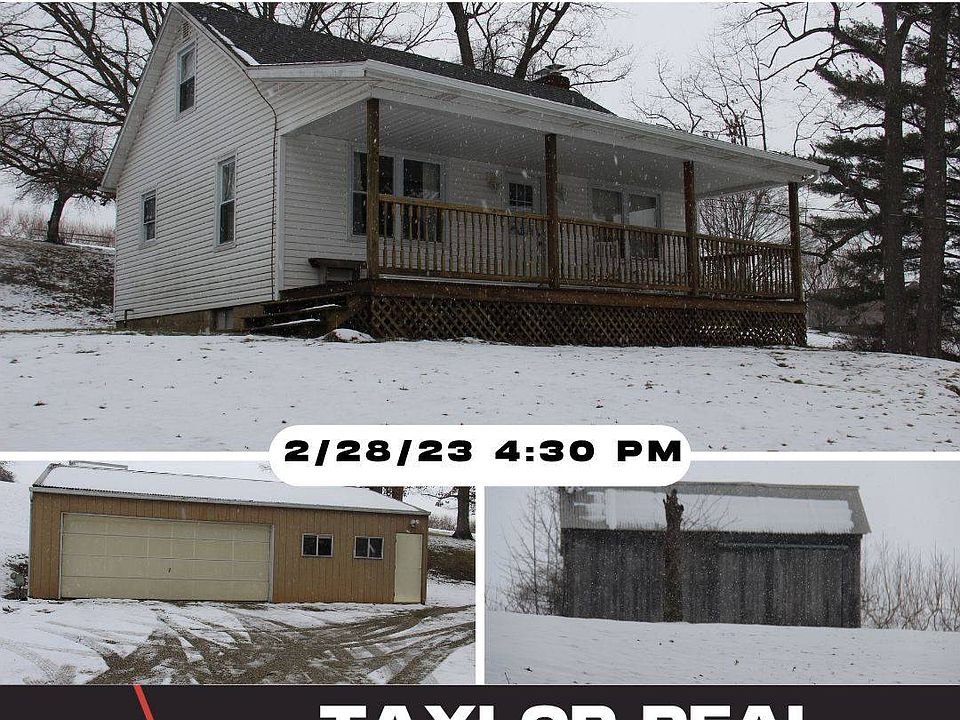 TAYLOR REAL ESTATE AUCTION- 3 BR Home & Garage/Shop on 2 Acres- Wooster Twp. * Wayne Co. * Triway LSD- TUESDAY, FEB. 28TH, 2023 at 4:30 PM- Will sell on location 3483 Batdorf Rd. Wooster, OH. From Wooster, take SR 3 South to SR 226 at Triway Drive Thru then south 1/2 mile to Moore Rd. Then east 1/2 mile to Batdorf and then south 1/2 mile to property. From Old Columbus Rd. at Bishops Restaurant and Canaan Meats, go south 1 1/2 miles on Batdorf Rd. REAL ESTATE: Selling a nice story and a half home built in 1954 w/three bedrooms and full basement. The first floor has 800 sq. ft. of finished living space and includes kitchen w/dining area, living room, bedroom, and full bath. Enjoy the front porch w/eastern view overlooking the Killbuck Valley. The detached garage is 24' x 36' with room for two vehicles and a shop area. It is insulated and heated. There is a small shed at the west side of the property used for a horse years ago. The buildings sit high and dry on this 1.97 acre hillside lot with circular drive and several mature trees. The home has been well maintained and has vinyl replacement windows. A gas F/A furnace w/wood burner add-on and central A/C complete the mechanicals. The property has it's own water well and is connected to the city sewer. This is a good auction opportunity in the Westwood area and Triway School District. OPEN HOUSE: The property will be open for inspection on Tuesday evening Feb. 14th from 4 - 6 PM. Stop and take a look, then take your sweetie out for Valentine's Day. Other showings are available by appointment.TAX & LEGAL: Parcel NO. 56-01429.000 - 1.97 Acres - Wooster Twp. Triway LSD. The taxes are $ 657.14 per half-year w/the Homestead Exemption added back in. Taxes will be pro-rated to the day of closing. The seller will provide a Warranty Deed with certificate of Title and offer to split the fee for an Owner's Policy of Title Insurance. Immediate possession will be given at closing. TERMS: We require a non-refundable down-payment of 10% of the purchase price at the close of the auction with the balance to be paid in full at closing within 45 days. There is a 5% Buyer's Premium in effect for this auction. 5% of the high bid will be calculated and added on to determine the contracted selling price.