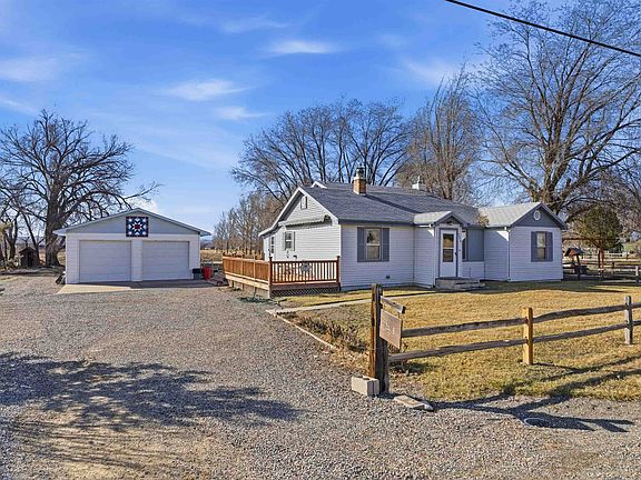 Set on 5 acres of beautifully irrigated agricultural land, this classic farmhouse offers unprecedented panoramic views of the Grand Mesa and Mt. Garfield in the desirable agricultural area of Clifton near Palisade, Colorado. The setting is peaceful and wide-open, with room to breathe, farm, garden, or simply enjoy Western Colorado’s iconic scenery. The home features 3 bedrooms and 2 bathrooms, with a comfortable living room and a spacious family room anchored by a cozy gas fireplace and a sliding door leading to a covered patio, perfect for gatherings or quiet evenings at home. Natural light and scenic vistas frame the farmhouse character throughout. A standout feature of the property is the large 2-car garage with an additional dedicated shop space, offering three overhead doors and upgraded electrical—ideal for equipment, hobbies, storage, or agricultural use. Whether you’re looking for a productive small acreage, a homestead with room to grow, or a rural retreat close to Palisade’s wineries, orchards, and amenities, this property delivers views, versatility, and timeless Colorado charm.