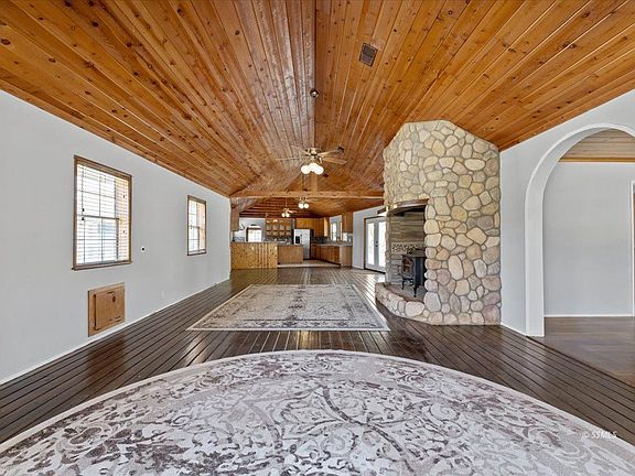 Fantactic family home, open concept kitchen/living area. Almost 3,000 sq ft of living space on almost 1 acre zoned for horses.Close to schools and shopping. Huge living room with spectacular ceilings & woodstove. There is also a large den/game room with it's own wall a/c and heating unit with access to patio and garden, laundry room with 1/2 bath. The kitchen is just lovely!! All appliances - frig, dishwasher, microwave, propane stoves, center island with additional storage space all with quartz countertops.. Ceiling fans, gorgeous wood ceilings, dual pane windows. The Master suite is quite large with a jetted tub and pedestal sink. The hall bath has a tub/shower combo. The garage has finished walls, pull down stairs to attic storage and a wall of work benches cabinets!! Fruit tree lined driveway to side and backyard areas w shed, large garden area. This home is a dream!!