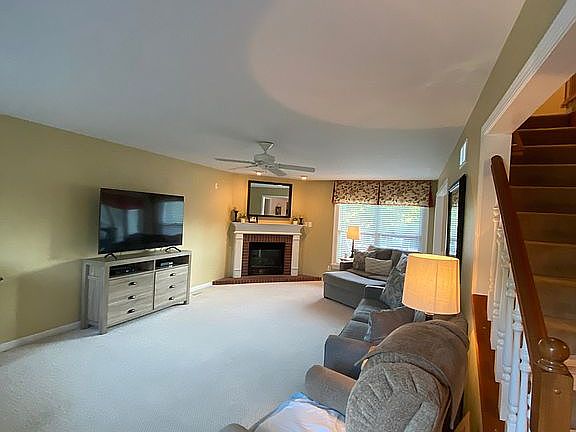 Stunning two-story home with large paver front porch! Spacious main level with hardwood foyer. Large open concept family room with gas fireplace leads to eat-in kitchen with granite countertops. All appliances stay. Laundry/mud room off kitchen leads to 2-car, tandem garage. Office with French doors off of the kitchen. Back door leads to 32'x14' renovated deck. Large master suite with vaulted ceiling, master bath with double vanity sink, garden tub, and walk-in closet. Partially finished basement exhibits TV area, work-out area, and 3/4 bath. Basement walkout leads to large patio and beautiful private, tree-lined back yard. Perfect for entertaining! Alarm system, new roof, and new water heater.
