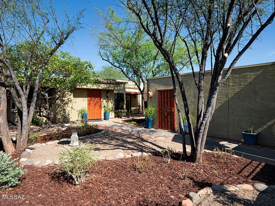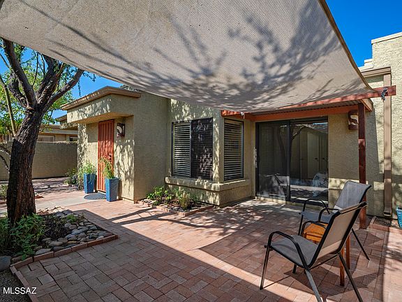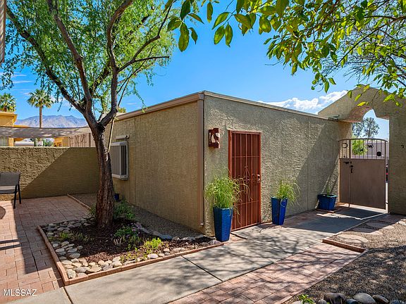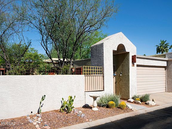 * Amazing location along the Rillito River Park & Bike Bath! Beautiful courtyard oasis with water-harvesting & xeriscaping w/low water use watering system. Brick Patio. Newer : HVAC, hot water tank, kitchen appliances, water-harvesting tanks & gutters, washer & dryer. NEW : irrigation, garage door opener, recessed lighting in kitchen & window treatments & screens. Split bedroom floor plan. A finished 2 car garage has insulation, cooling, lighting and security door perfect for extra living space, workshop, studio, secure & clean storage, and posh place for car, garden tools, and bicycles. In GREAT condition. Orange Tree. Some new carpet. Nearby guest parking & swimming pool. Owner occupied purchasers only.