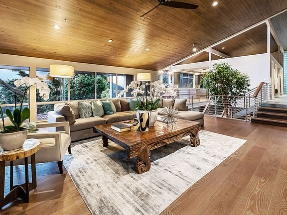 Private gated estate with landscaped grounds, accessibility features (bedroom and full bath on first floor), patios, and decks. Hiking trails weave through the property's lush terrain, making it a nature-lover's dream.