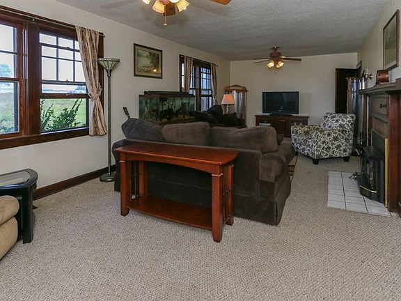 Charming Bungalow in a Private 1 acre wooded setting. This home has original woodwork, gorgeous fireplace w made from Cherry cut from property. Full finished basement with many flexible options. Recreation area- current recording studio could be bedroom-there is escape door in basement. Master suite has nice whirlpool tub/sep shower. Lg front porch, newer 3 car detached garage , furnace, roof, and appliances in 2008, water heater '14. If you are looking for nice country living this is it!