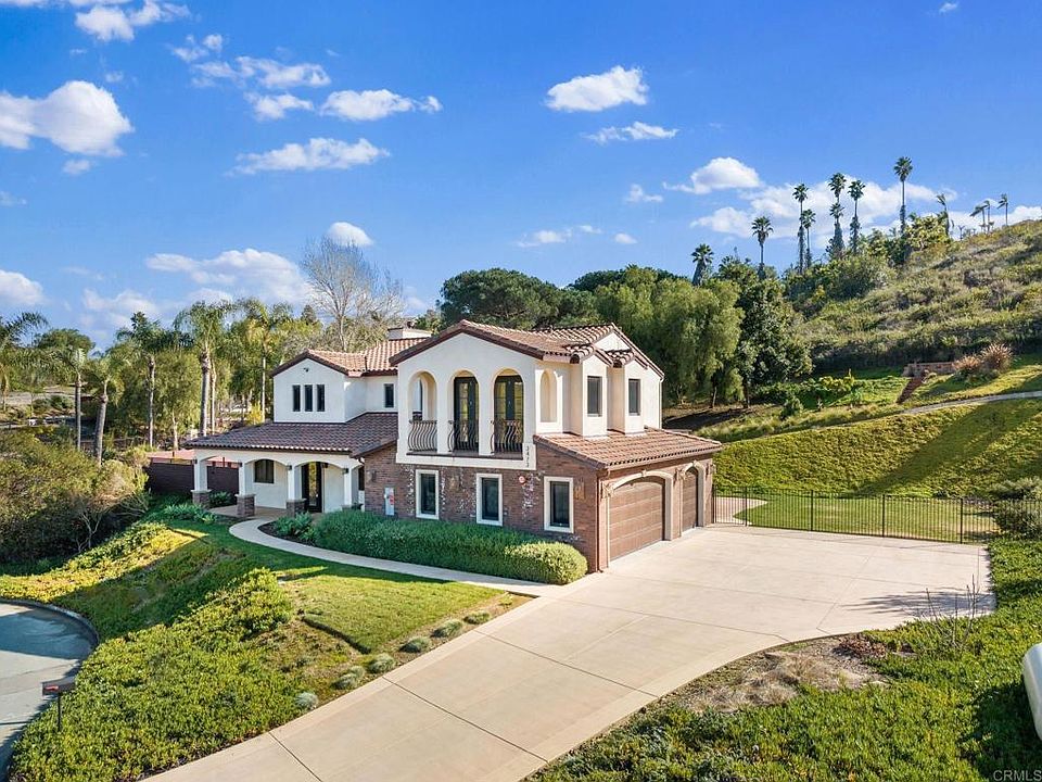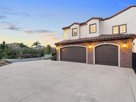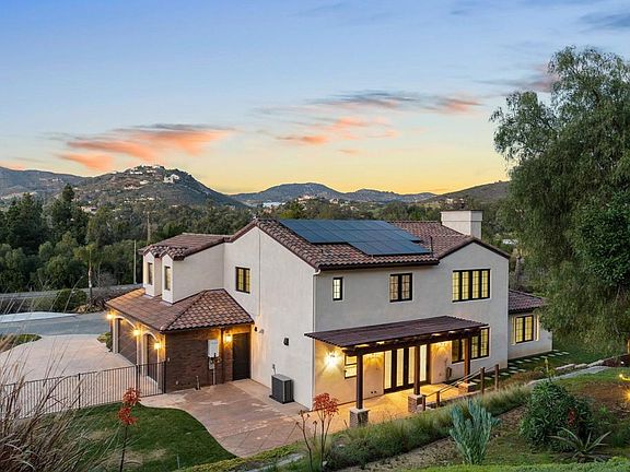 Luxury Living in Exclusive Sagewood Hills neighborhood of Buena Creek in Vista! The home sits at the end of a cul-de-sac and features unobstructed views of the surrounding hills and mountains. Enjoy the peace and tranquility of country living while still being close to schools, shopping and freeways. Just a 20 min drive to Carlsbad beach! Custom Mediterranean 4 Bedroom/3.5 Bath home, plus a large bonus room with balcony, and expansive covered front porch. Downstairs master with exposed beams, large bathroom, walk in-shower, freestanding tub, dual-sided fireplace, and large walk-in closet. All other bedrooms are upstairs. Home features a large gourmet kitchen with an island, walk-in pantry, quartz countertops, two sinks and stainless steel appliances. The main living areas are hardwood surface, custom ceramic tile or lush carpeting in the bedrooms. House has large designer windows throughout and custom fixtures & finishes. Huge family room with fireplace, exposed beams and two-story ceilings is open to the kitchen and breakfast area, PERFECT for entertaining. Large sliding bi-fold door leads to a covered patio and large yard 1.3 acres with room for a pool. Be sure to check out the large stone patio at the top of the hill in the backyard for amazing views of the mountains. Home has an oversized driveway with an extra deep 3-car garage perfect for generous parking. Energy efficient systems have been installed including paid-for Samsung Solar Panels, a tankless water heater for immediate hot water, 2-zone energy efficient heating and cooling and Cat 5 technology throughout the home. Property has been landscaped and fenced, with a timed irrigation system in place. Home features orange and lemon trees and over 10 mature macadamia nut trees. Rain gutters have also been recently installed. No Mello Roos!