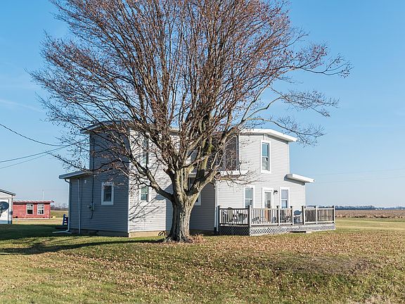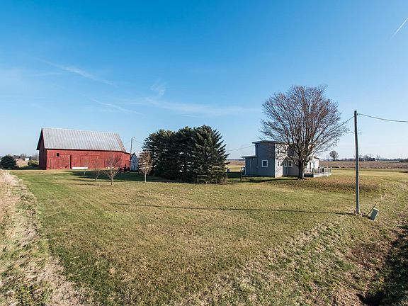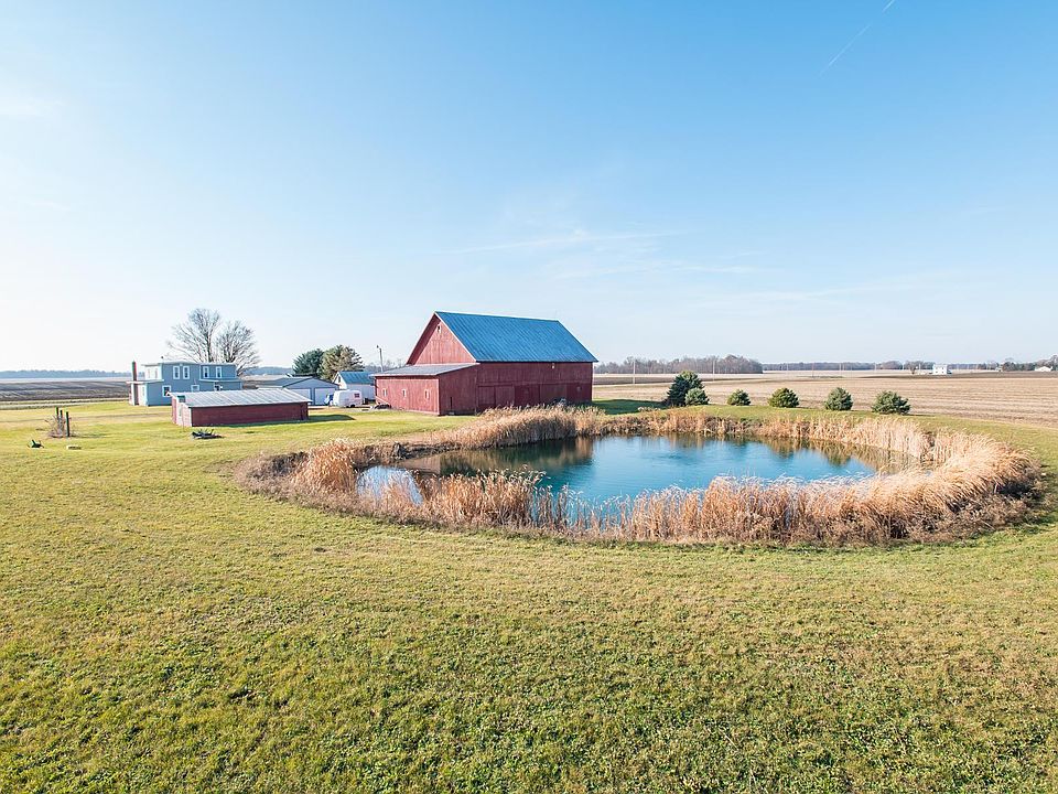 Enjoy beautiful sunrises and sunsets in this UPDATED farmhouse situated on 5 country acres w/3 outbuildings (huge barn, chicken coupe, additional storage building), a 2 car detached garage, fire pit, and a gorgeous pond! Featuring newer siding (2017), newer electric, plumbing, updated bath, updated kitchen w/custom cherry cabinetry and SS appliances, newer windows, 1st flr laundry/utility rm, and gorgeous hardwood flooring, quality woodwork/doors/trim throughout. The upstairs features 3 BR's including a master suite w/attached room ideal for private den, extra closet space or nursery! Exterior is maintenance free (vinyl siding, aluminum soffits, and composite deck). This property is USDA Eligible w/ZERO down payment option! ENJOY COUNTRY SECLUSION HERE! See A2A for $2000 sale bonus!