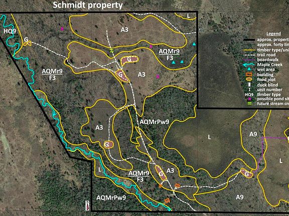 This property is a hunter's paradise! The cozy cabin at the southern boundary of this 148.26 acre parcel brings the comforts of home to the wilderness and is the perfect place to recharge after a long day of hunting or exploring nature. This property features 6 food plot areas with raised shadow blinds on each, making it a turnkey hunting property. There are two large pole barns on the property, the first is 864 sq-ft (36'x24') and the second is 576 sq-ft (24'x24'). The cabin and pole barns are completely off-grid, powered by PV solar panels. Approximately 1,000 feet of frontage on Maple Creek along with a large wetland area on the eastern edge of the property provide a great water source for deer along with habitat for waterfowl and other quarry. The Sharon Bridge boat launch on the Manistee River is also only a 1.25 mile drive away, making this property a great fit for hunters and fisherman alike.