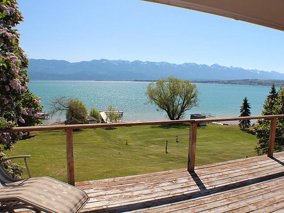 Flathead Lake 3 bedroom/2 bath home sits overlooking the lake on 76 ft frontage. Beautiful views of the Mission Mountain Range. One bedroom guest home sits at waters edge. Dock and boat ramp.