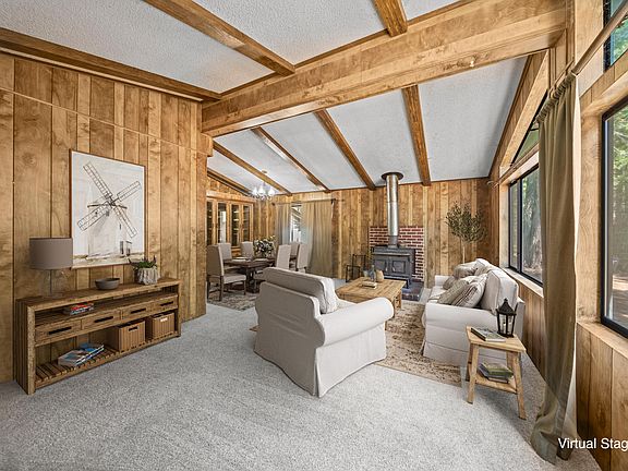 Stunning, natural park-like setting tucked away in Shingletown with so many EXTRAS! This home is on a PERMANENT FOUNDATION, and has so many spaces for the hobbyist or collector, including a detached two car garage PLUS an additional finished WORKSHOP/craft room with wood stove! Additional amenities include BRAND NEW CARPET, an enclosed front deck, and even a separate office space for those who work from home or need a bonus space (this room may or may not be permitted). Home lives large with vaulted ceilings in the living room, cozy wood stove, breakfast bar, and even it's own wet bar! Just minutes away from Lake McCumber! Come see this home and make it yours today!