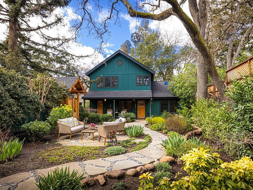 Welcome to 3474 Moraga Blvd. This artfully crafted 1716 SF home was custom built in 2011 by a woodworker who carefully curated every detail. This timeless home, plus huge (684 SF) guest house, is in the heart of downtown Lafayette. Close to everything, yet tucked away on a private lot on the creek. When you come through the front gate you'll see landscaped gardens with meandering paths. Step onto the porch of the main house and enter to find an open floor plan with exposed beams. The main bedroom is on the ground floor with ensuite bath. Two more bedrooms and an office are on the second floor. The side yard boasts an outdoor patio with a wood stove for entertaining. Follow the path down to the artist's studio complete with water, electricity and heat. The former Woodshop serves as an ADU, a great place to entertain. With full size appliances, a full bath and a sleeping loft, the possibilities are endless. Just blocks from highly rated K-8 schools. Truly a one-of-a-kind property.