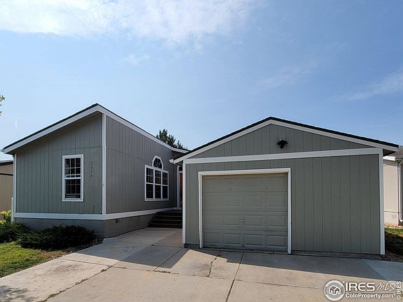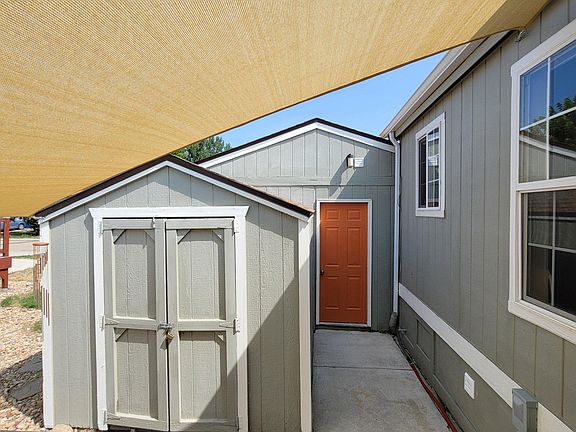 A beautifully remolded and updated manufactured home. Open floor plan, lots of light, skylights, freshly painted, newer carpets, newer flooring, upgraded lighting, large room sizes, lots of storage in the kitchen, oversized garage with 4 car parking slab, plus ext storage shed, paved back yard patio. Community offers, parks, walking paths, pool, catch and release fishing pond. Easy commute to Longmont, Boulder I25, Hwy 119, Hwy 52, Denver, Fort Collins....sq ft includes garage per VIN Title