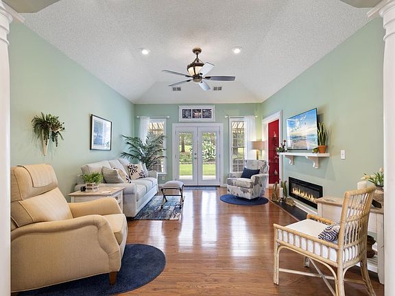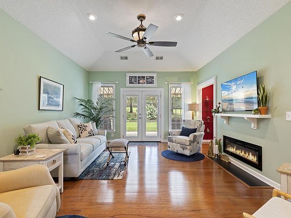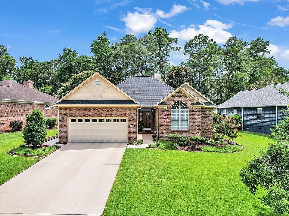 Sensational views of the 10th green and fairway are an incredible backdrop for this impeccably maintained brick beauty in ever popular River Hills. Well designed plan offers volume and tray ceilings, recessed lighting, many windows, split bedrooms and generous storage. The interior is beautifully appointed with many architectural features including decorative pillars and wall niches, arched entryway and crown mouldings. Both bathrooms have been renovated since 2019 and there is wood, tile and vinyl plank flooring throughout. The newer granite kitchen is bound to please the cook in the family and features abundant white cabinetry, plenty of counter space, center island with storage, sizable pantry as well as a sun drenched morning room. The owners suite is spacious and opens to a show stopping bathroom highlighting dramatic high ceilings, raised double sinks, tiled shower and soaking tub as well as a walk in closet with an organization system. Two (2) additional bedrooms have access to a beautifully updated bath featuring a tiled step in shower and raised vanity. The great room features a tray ceiling, recent electric fireplace/mantle modification and opens to a delightful rear patio with retractible remote control awning. The garage is spotless. New roof in 2019. Situated on a well landscaped "custom" sized homesite with in ground irrigation and rear fountain. Don't miss this opportunity! Country club amenities available separately.