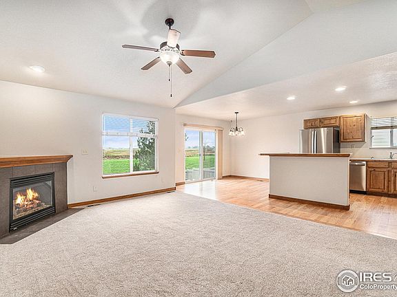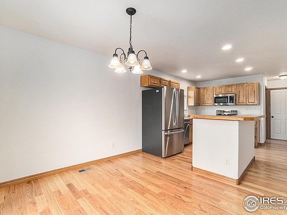 Welcome to this beautiful ranch style home that has had so much done just for you! As you walk through the front door, you'll be greeted with brand new carpet throughout. The wood floors in the spacious kitchen have all been refinished. Numerous knotty alder cabinets with an island for amazing storage space. All brand-new Stainless-Steel appliances, Refrigerator, Electric Range/Oven, Dishwasher and Microwave. Roof installed in 2019. Primary bedroom offers a walk-in closet and full bath. Enjoy the smaller back yard which means less yard work for you. Within walking distance of wellington's premiere park with baseball fields, batting machines, pickleball courts, picnic area with swimming pond for pets and concrete walking path around entire Buffalo Creek subdivision. Please see the Larimer County web map in the MLS documents showing that open space will remain behind this home.
