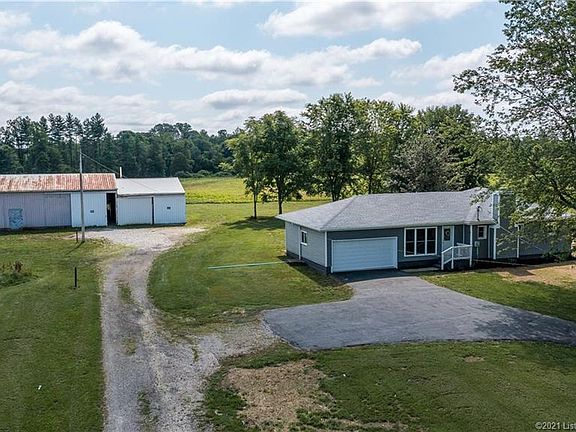 Time to start a farm? Search no further. 33.68 acres w/a large-pond and wooded area as well. Mins. to Patoka Lake. Charming country style 4 beds 2 full baths. Completely remodeled home: new roof, new siding, new double-pane windows, new flooring, freshly painted, hvac system. Walk in the front door entering through the large family room with natural lighting throughout. Family room leads to the stunning modern kitchen with an abundance of cabinet space, back-splash, all new appliances. Access from the kitchen to the attached garage. Grab a cup of coffee and a book, sit outside on the back-covered patio and enjoy the beautiful scenery along with sounds of nature. Living room is large with a stone fireplace. This home also features a full finished basement. City water. Huge pole barn on the property with half concrete flooring and half gravel. Now all this home needs is you.