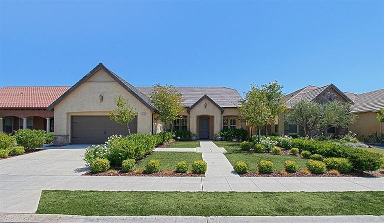 Highly upgraded Wathen-Castanos Town and Country home in Harlan Ranch across the street from a neighborhood park. Gorgeous wide-plank real hardwood floors in ALL living areas and bedrooms, plantation shutters throughout, cherry cabinets, granite counters and island, stainless steel appliances including refrigerator and gas stove, designer tiles. Flexible floor plan: Formal Dining Room. Kitchen open to Breakfast Nook and Great Room with fireplace. EXTRA Room for Formal Living, Library, Music or Game Room, or enclose for a 4th bedroom. 3-car tandem garage with built-in storage. Tile roof. Get to know your neighbors through organized community activities and enjoy the lifestyle of this master planned development with multiple parks, huge pool, clubhouse, walking paths, elementary school and sports fields. Quick and easy access to all parts of town via freeway 168!