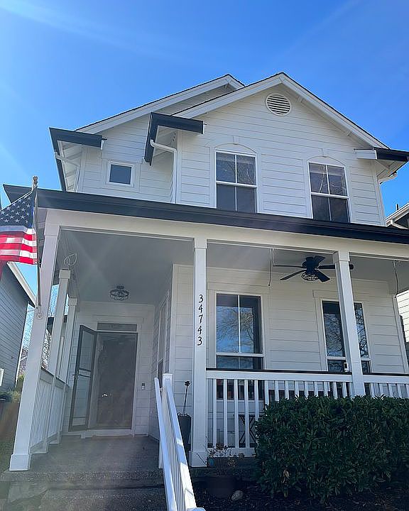 This charming Centex home is located in the heart of Snoqualmie Ridge known as "The row" which is centered directly on the ridge top. It is less than two blocks away from the growing retail village, Cascade View Elementary School, and 16-Acre community park. The spacious floor plan includes living and dining rooms, island kitchen with dining nook, upper landing with built-in tech desk, two guest bedrooms with Jack and Jill bathroom, and master suite with private bath and large walk-in closet. Interior features include hardwood floors on both floors, ceiling fans, upgraded wiring, electrostatic air filter, and added cabinetry. The large front porch is great for greeting guests and taking in mountain views. The hardwood entry opens to the living and dining rooms. Nine-foot ceilings on the main floor add to the spacious feel of the home. The living room is complete with gas fireplace with tile surround and media niche. The dining room is large enough to accommodate a formal dining set. The kitchen is a chef’s delight with center island, tile countertops, stainless steel appliances, hardwood floors, and separate dining nook. The utility room is just off the kitchen and includes custom added cabinetry. Upstairs, you’ll find a convenient built-in tech desk, complete with cabinetry. The two guest bedrooms share a full Jack and Jill bathroom. The master suite overlooks the back yard and features a large walk-in closet and full bath with dual vanity, tile countertops, and large soaking tub. The back yard is the perfect outdoor retreat! Features include an extended patio, hot tub, mature landscaping, front and back yard water drip system, outdoor lighting, and custom brick paver walkway. The detached garage is fully finished and includes overhead attic storage and upgraded power to accommodate a wood shop. This home is also wired for a generator and security system.