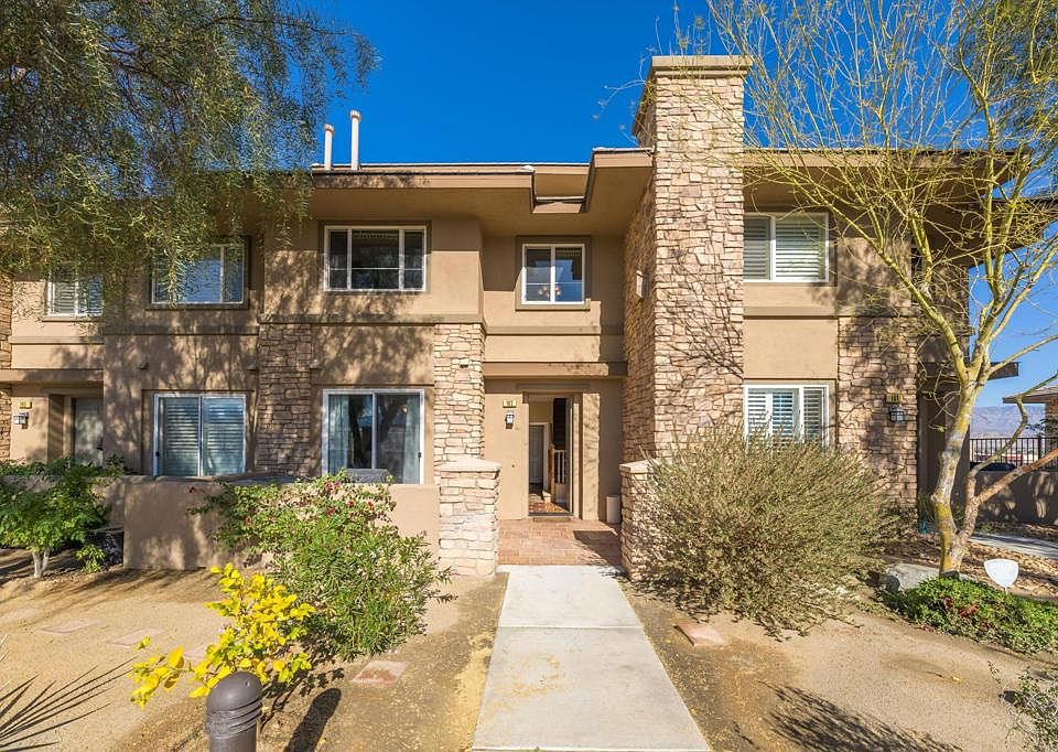 Check out this original BUILDER MODEL condo at Monterey Ridge. This beautifully maintained Spanish styled 2 BR/2.5 bath townhouse features an expansive community resort-style pool, spa and clubhouse. Upon entering the first floor foyer area you have guest bedroom one with en-suite bath which features sliding glass door leading to the south facing patio. The separate lower level laundry leads you to the attached two car garage. Upstairs you'll find an open, vaulted kitchen area perfect for entertaining as it includes a large granite island and stainless steel appliances. The living room showcases a gas fireplace and custom display shelving. The Master bedroom is also located upstairs and includes a walk-in closet, en-suite bath with double vanity and separate water closet. Third floor loft area is expansive with views and can be used as a third bedroom, office, or den area. Solar OWNED! Conveniently located in North Palm Desert close to shopping, I-10 freeway, and the Cal State San Bernardino - Palm Desert Campus. Close to Hospital, Markets, and Shopping centers. You won't want to miss this rarely on-the-market gem!