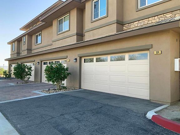 This previous Builder model home has all the finest upgrades to satisfy the pickiest buyer.The entry level has a nice sized bedroom with ensuite bathroom, access to patio area and the laundry closet is also on the lower plus access from the large 2 car attached garage. The custom tiled stairway turns at the landing and delivers you into the stylish living room/Kitchen area. Lots of Custom cabinetry houses a wine refridgrater, tons of storage and a desk area. The inviting gas fireplace warms this living room with tons of windows for a light and bright room. All windows have plantation shutters with incredible Northern and Southwest views. All accented by the warm colors and engineered wood floors The open kitchen design includes corian countertops, maple cabinets all showcased with a beautiful designer backsplash and under cabinet accent lights. The large kitchen island /bar houses a double stainless sink and dishwasher. Too many upgrades to mention (earthquake secure upper cabinets, paid solar system, ceramic tint on upper windows, surround sound and travertine flooring. The large upstairs bedroom has an ensuite bathroom with double sinks and tub/shower combo. 2 seperate closets and carpeting. Great views from bedroom and lots of light. Bring your VA buyers, property on VA approval list.