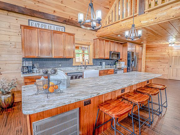 *** Price Reduced *** With Views like this it's easy to see why the owners nicknamed this cabin ''A Dream Come View!'' This gorgeous log home boasts 3 large bedrooms, 3 full baths in each bedroom and 2 half baths. It also has a large bonus room with attached half bath. The kitchen features custom made maple cabinets and granite counters farmhouse sink, and stainless-steel appliances. The large living room with floor to ceiling stone gas fireplace is the perfect place to relax after a long day exploring the mountains. The master suite has a custom-made tile shower and jetted tub, double sinks large walk-in closet both with barn doors. Walk through the french doors and you'll step out onto the over the huge porch with amazing views of the mountains! The upper level has two large bedrooms both with ensuite full baths and large closets, and a huge loft area. In the lower level you'll find nothing but potential, it could be used for almost anything that you could imagine! It's tough to find views like this without any steep roads, so don't miss out on this beautiful home in the valley! This cabin would be perfect for a primary residence or second home, it is not able to be used for overnight rentals.
