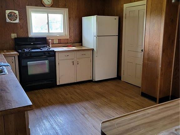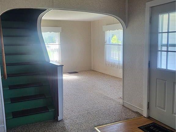 Large older farmhouse that needs work but has lots of possibilities. Attached covered patio, between the 2car garage (last used as a store front)& home. The attached 2 car garage has 4 additional garage bays in the rear. Entering the patio, takes you into the formal dining, lliv.rm, eat in kitchen, laundry area, f1st floor bedroom, family room, 1st floor bathroom. Upstairs are 3 bedrooms, 1 bedroom is adjoining. Some replacement windows, washer, dryer, stove, refrigerator, HOME GENERATOR,a/c. Water heater 2025. Large barn in rear. Parcel 14-33-00-0002-11 goes with property, total 14.03 acres