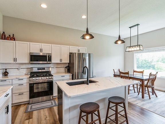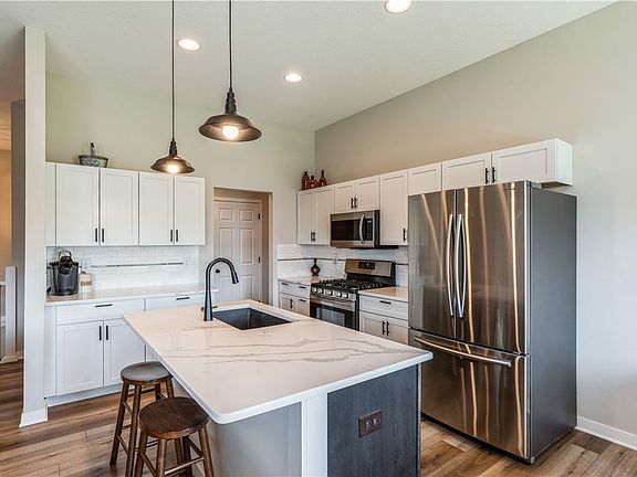 Welcome to this new listing in the desired Lake View Ridge neighborhood by Easter Lake. This custom built ranch is in the Carlisle School district with 3 years tax abatement remaining and includes 4 (easily 5) bedrooms and 3 baths. Open concept with the split bedroom plan is ideal with 10 ft ceilings on main and top end finished such as quartz counter tops, stainless steel appliances, stunning flooring, tile and lighting plus irrigation and epoxy garage floors. Master is large with a master bath including oversized tiled shower plus the closet leads to the laundry room for easy access. Main floor has a covered deck and the WALK OUT has a covered patio! Razor back stair way leads to basement that has the 4th bedroom, 3/4 bath, family room and a gym. Fenced in yard is a plus. Home is close to the bypass and walking distance to bike trails, kayaking, swimming and fishing. Call today!
