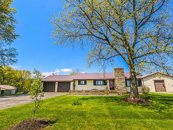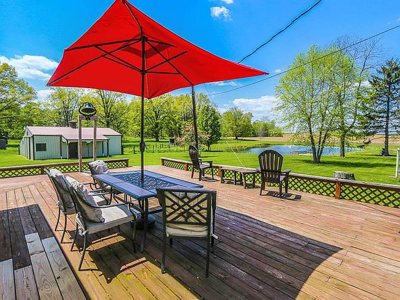 An oasis with beautiful views and your own fully stocked pond. Well maintained ranch with multiple outbuildings. Stables, two car garage was converted into a chicken coop, and a large heated pole barn. Two car attached garage, but the pole barn with large overhead door could provide additional parking for 8+cars or farm equipment. Large living room welcomes you with stone fireplace. Eat-in kitchen, two bedrooms and updated bath complete the first floor. Oversized family room with bar in the lower level. Family room also has a wood stove. Bedroom, full bath, and storage complete the lower lever. Enjoy your morning coffee on the expansive deck. The stables have several stalls and electricity. Large fenced pasture with hay/feed stations scattered throughout. Enjoy the views!