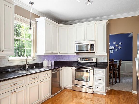 Immaculately maintained 4BD/2.5BA home on cul-de-sac w/spacious backyard and fully finished basement! Beautiful 2-story entry opens to Living Rm currently used as home office. Light & bright KIT features 42" white cabinets w/under cabinet lighting, granite countertops, marble backsplash, & stainless steel appliances. Eat-in breakfast area & formal DR w/crown molding. Beautiful family room w/frplc. Spacious Master Bdrm w/incredible amazing tiled shower & dbl sinks. Bsmnt w/rec & play areas, full bath & incredibly large storage room. Large laundry room w/slate floors. Finished garage w/ bumpout - nearly as large as a 3-car. Enjoy relaxing outdoors on paver patio overlooking wooded backyard. Smart thermostat, too to reduce heat/cool bills!