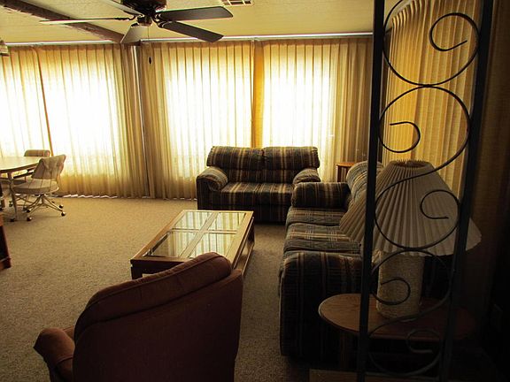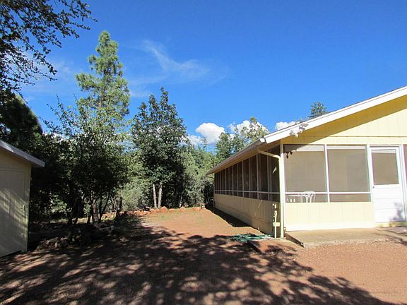 Beautifully treed property on almost 1/2 acre. Huge screened patio provides extra space for family and friends. Mobile and porch are sheltered by a trussed roof. Large backyard with no one behind you gives you privacy and impression of having acreage. Enjoy watching the deer and elk right in your own backyard! Enjoy central AC and heat for year-round comfort. Circular driveway for easy access in and out. Lots of storage space. Property has recently been given a fresh coat of paint and some TLC. New septic tank in 2011, leach lines added in 2015. Most furniture included at no cost to buyer.
