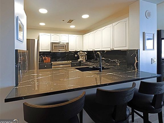 Located at 3475 Oak Valley Road NE, Unit 1450, is walking distance to desirable shopping and restaurants in Buckhead and has spectacular views of Atlanta. This attractive property is a refined residential experience and offers several amenities such as a gym, pool, and friendly staff. The property boasts several updates including fresh paint, removal of the popcorn textured ceiling, brand new stunning quartz countertops that go with the modern aesthetic, new light fixtures, ceiling fan, and LED recessed lighting. The walk-in closet has a completely upgraded system. A brand-new refrigerator with a gourmet ice ball maker and fully updated half bath is included in the condo. The kitchen is designed for both functionality and style, featuring a kitchen bar perfect for casual dining or entertaining. The bedroom is a tranquil retreat, enhanced by floor-to-ceiling windows that invite natural light and offer expansive outlooks. Imagine waking up to the gentle morning light, creating a serene and inviting atmosphere within your private space. The bathroom provides a spa-like experience with its walk-in shower, double vanity, and large soaking tub. This property offers a blend of style and practicality, perfect for enjoying the best of city living. The condo also comes with a designated parking space and storage area.