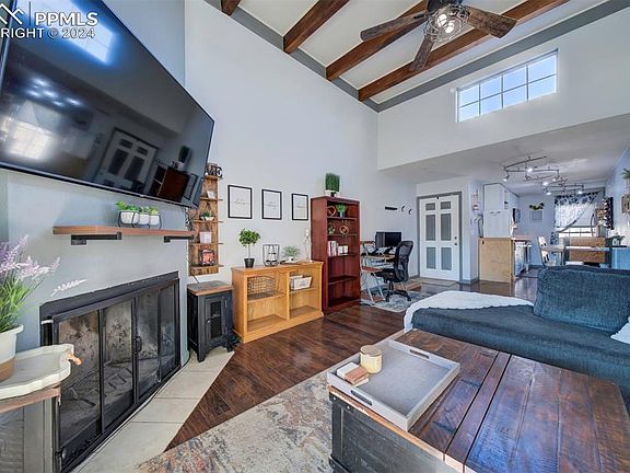 This stunning, move in ready 3-bedroom, 2-bathroom condo is waiting for you to call it home. As you step inside, you're greeted by 9ft vaulted ceilings adorned with elegant wood beams, tons of natural lighting, & a wood fireplace creating a sense of spaciousness and inviting atmosphere. Imagine preparing delicious meals in the contemporary sleek kitchen that features stainless steel appliances and a gas stove. The primary bedroom offers a private retreat with its own updated bathroom and built in shelving in closet, ensuring comfort and convenience. Picture yourself relaxing on the private balcony, overlooking open space. The homeowners' association covers all utilities, including gas, electric, water, and exterior insurance. Enjoy community amenities such as a pool, clubhouse, and fitness center.