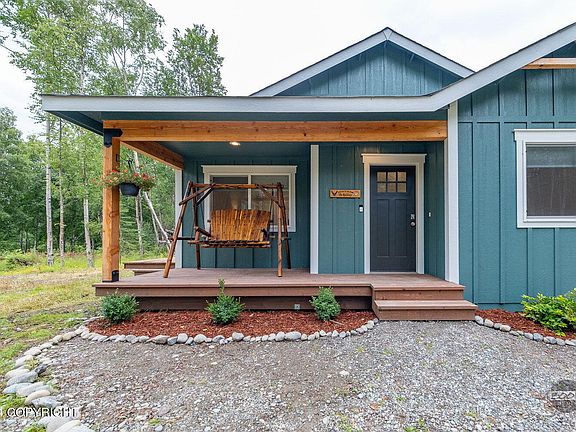 VA assumable loan at 3.25%! Immaculate 2022 built home situated on a private treed lot just off Knik-Goose Bay Rd. As you step inside you're greeted by vaulted ceilings that create a spacious open-concept living area. The kitchen features espresso-colored cabinets that contrast with the modern finishes throughout the home. The primary bedroom is complete with a custom tray ceiling with wood accents. The expansive level yard offers plenty of room to grow with endless possibilities to make it your own! There is ample room in the 2 car garage for vehicles, outdoor gear, and storage. The location is the perfect blend of privacy and convenience with access to local amenities, schools, and the great Alaska outdoors. Don't miss your chance to make this hidden gem your own!