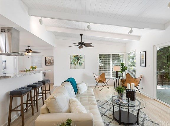 Mid Century Single level Beach Cottage with inspiration for second level addition with ocean views. Located in the most superior area of Dana Point in a community called "Capistrano Beach." This open airy layout invites a bright and breezy feeling, perfect for entertaining. A flowing sleek kitchen completely upgraded stainless steel appliances, granite countertops, travertine backsplash with polished concrete floor. Rear patio area opens up with plenty area space for entertaining with built-in fire pit area and newly finished landscape with lighting. Brand new Landmark fiberglass shingle roof. Engineered wood flooring throughout. Small den/office off the kitchen with glass doors. This home offers two full bedrooms and a small office which adds up to a total of three rooms, one without a closet space. Perfect for anyone, this home is ideally positioned to enjoy a Southern California lifestyle. Conveniently close to freeway (1 hour to San Diego and 1 hour to Los Angeles). Close to shoppi