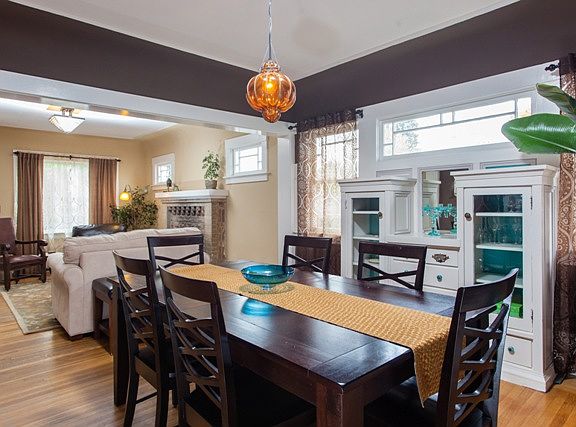 Charming Craftsman, original details include living room with working fireplace, dining has original built-in,inviting colors,hardwoods throughout. Updated bath, new counter tops in spacious eat-in kitchen. Large yard & bonus office/hobby space. Laundry room + basement storage. Many system upgrades.