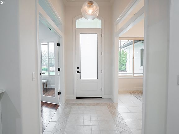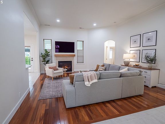 Fully gated and fenced regal custom home located at the end of a cul-de-sac in the highly sought-after Valley River Village neighborhood! Connections to many neighborhood parklike pathways that also connect to miles of Willamette River trails, bike paths and parks. Enter this beautiful primarily single-level home through the stately 8' custom front door, transom window and trim with satin etched glass enhancing natural light and privacy. Brimming with recent upgrades, this well-maintained home on over 1/4 acre has an excellent floor plan, fresh interior/exterior paint, new carpet/padding, new recessed lighting, new electrical switches and outlets. With 4 bedrooms, 3 full bathrooms, office and upper bonus room this home feels incredibly spacious with 11' ceilings, but is very easy to maintain. The living room is cozy and intimate with a gas fireplace insert and white oak-finish mantle. Gorgeous hardwood and tile floors bring grace and beauty throughout. Waltz into the glorious kitchen where you'll find classic romanesque veining quartz countertops, stainless steel appliances, gas range and hood, formal dining, eating nook and plenty of space to cook and dine. Generous laundry room with counters, cabinets and utility sink. Wonderful primary suite has a huge walk-in closet, dual sinks, large soaking tub, and is nicely separated from the secondary bedrooms and office. The large finished bonus room is an ideal private workout space, playroom or larger home office. Relax and enjoy a superb, expansive patio complete with large covered area, pergola and fire pit. Plenty of room for entertaining and easy to maintain custom landscaping. Tons of extra parking space and over-sized 2-car garage with ceiling mount storage and electric vehicle power station. Too many upgrades to list - ask your Realtor for the features packet!