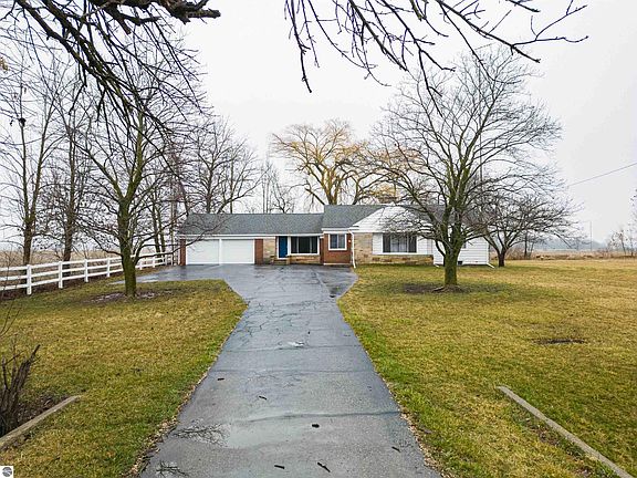 The perfect place to be. You will find your future home perfectly place between Clare, and Mt. Pleasant via easy access to Highway 127. Period details such as curved ceilings, arches, and 2 large, brick fireplaces add to the warmth and character to your home. Dine while enjoying the picturesque, country views from your l in front of your large picture window. You can choose to grill and dine peacefully on the patio facing wildlife. Lovely hardwood floors are believed to be throughout the home. The lower level boast wide pine ceiling planks around the downstairs fireplace. Plenty of room for a wine room, or additional storage. Updates are as follows: 1.New Everdry system installed last spring (transferable warranty) 2.New Garage Doors last fall 3.New insulation replaced throughout attic - 2021 4.New windows throughout the house - 2020 (transferable warranty) 5. Bathrooms remodeled - 2019 6.New vinyl flooring in the kitchen/dining this spring 7.Fresh paint through most of the house. 8.Professionally Remodeled/Repainted Cabinets. Additional vacant area is perfect for a pole barn. Township has an easement on the front of vacant property.*correction Easement runs through property into neighboring field.