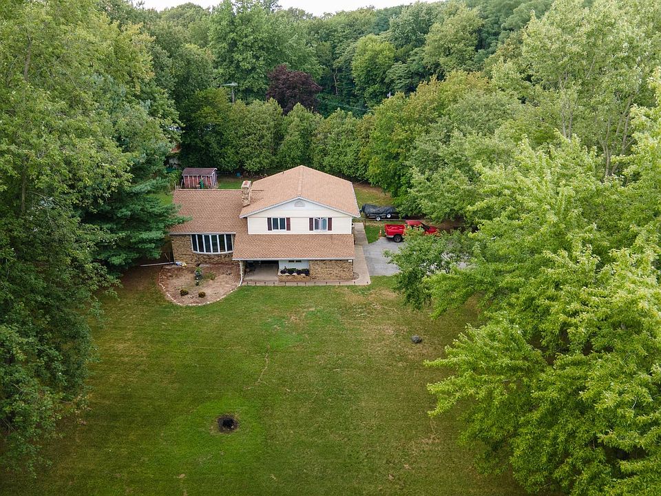 Well located quad level home sitting on a nearly one-acre corner lot. Featuring a brand new roof and blown in insulation, brand new appliances and kitchen countertop, new carpet, fresh paint throughout, brand new en-suite bathroom, pool, and more! Enter through the front doors and you'll find a classic quad level entrance, head up half a flight of stairs to the main living floor - living room with fireplace, kitchen, and dining, which opens onto the freshly painted back porch. Another half flight up are the bedrooms, full hallway bathroom, and the owner's suite. Down below you'll find access to the garage, a half bath, bar area, and another door opening to the back pool area. And finally to the basement, a den with fireplace, laundry and much more space to use your imagination. Book your tour today.