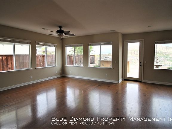 Beautiful home with hard wood floors downstairs, Carpeted bedrooms and upstairs. 3 car garage with one tandem spot. Nice size yard with separate dog area. Built in BBQ with warming tray, fridge, and unobstructed views of Calavera Hills. Spacious, open and bright. Full baths for each bathroom. One bedroom downstairs, large loft area upstairs with walk in closet off the loft. Large master with a bathtub looking out to the open countryside. Gardener included.