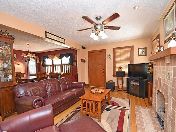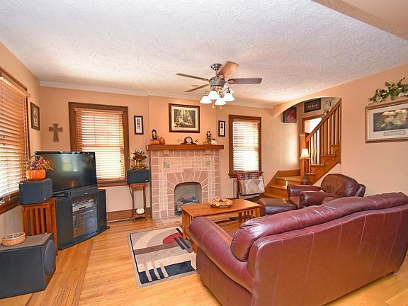 Hardwood in living room/dining room. Kitchen w/laminate floor & huge pantry, appliances stay! 3 Season/4 Season room off kitchen w/baseboard heat, walkout to deck. Newer light fixtures, ceiling fan in 3 Season room, living room & master bedroom. Partially-fin basement w/full bath. Original Rookwood pottery tiled fireplace! New roof-August 2017.