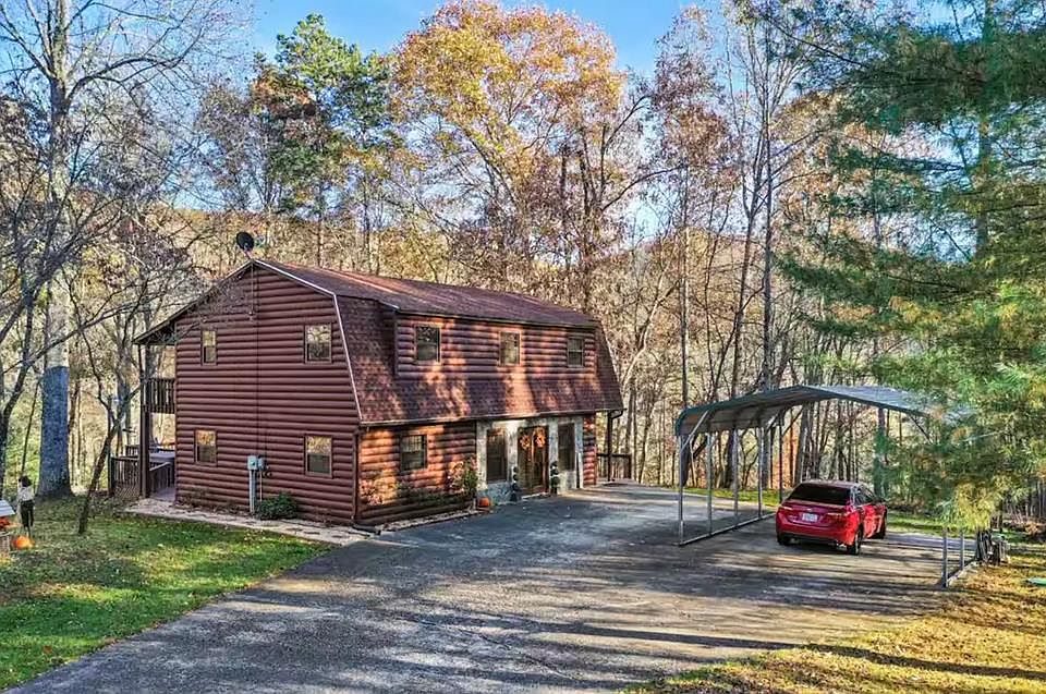 Cabin on 1.34 acres with deeded access to Hothouse Creek. 2/2 with seperate access to both levels. Could be turned into 2 apartments or stay single family home with finished basement and deck off upper level with creek view. Paved drive and parking. Sm storage building.Priced reduced to sell.