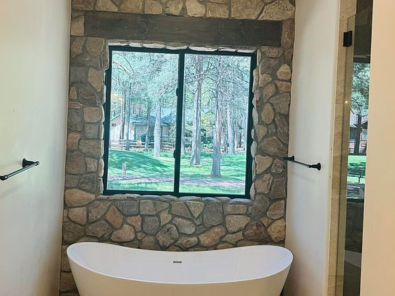 HOME BOASTS TWO DOWNSTAIRS MASTER BEDROOMS BOTH WITH EN-SUITE AND WALK IN SHOWERS. Upstairs has two bedrooms both with walk-in closets and full bath . Beautiful fairway views an tall ponderosa pines out all windows! 850 sf of garage space and 700 square sf of covered deck to enjoy the cool mountain air! Taj Mahal quartzite countertops, custom ''Tahoe Ash'' kitchen cabinets, engineered hardwood white oak floors , stone floor to ceiling fireplace with addtional stone in kitchen above cooktop arch.