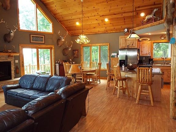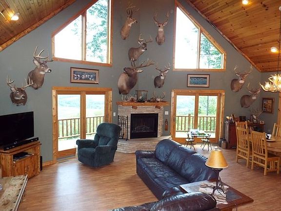Exquisite 4 bedroom 3 bath newer home with a million dollar view, open floor plan, great room, fireplace, master bath with Jacuzzi tub, wrap around deck, main floor laundry, finished lower level, multi zoned in-floor heating, walk out basement, attached insulated & heated 2 car garage, heavily wooded lot, fenced pasture with a stable, secluded setting. There is a spring in the NE corner of this property which borders a tree farm. Abundant wildlife, apple orchard, hiking & atv trails, outdoor flagstone patio with fire pit, and spectacular views. This is a one of a kind property which rarely presents itself to the market.