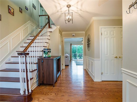 1st floor has formal dining with butler swing door into kitchen. Great room has been all hardwired for surround sound nestled along kitchen creating OPEN floor plan.