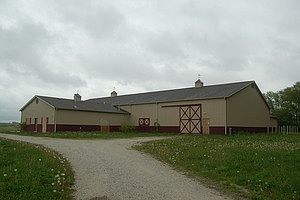 2009-blt Stable w/13 stalls, tack rm, wash rack, feed rm, hay storage. Indoor arena 80x120 w 16' clearance. 40x48 heated clubhouse reception area, kitchen, viewing rm, 2 full baths & laundry.5 fenced paddocks and hayfield on the 38 acre farm. '88 pole building for storage, '88 modular home in marginal condition.Sold "AS IS", no survey, No well/septic test provided. Tax pro 100%, no transfer stamps pd. Contract rider