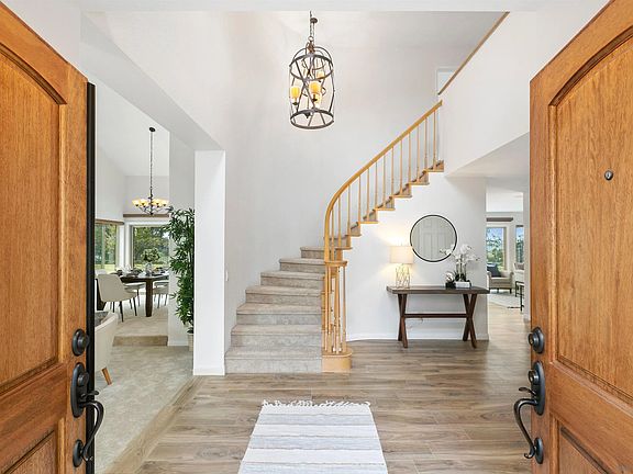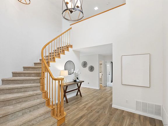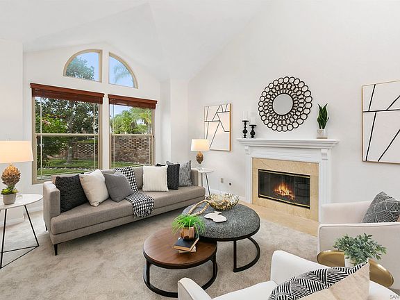 Welcome to this stunning La Costa home, which is a must-see for anyone looking for an amazing and spectacular wide-ranging view. This home is situated at the end of a private cul-de-sac. The primary bedroom features a comfortable sitting area, two walk-in closets with cedar panels, a cozy fireplace, and en-suite bathroom. Other features include a downstairs bedroom with a large walk-in closet and full bath, most ideal for guests. This larger model includes three fireplaces, three-car garage, and no HOA. The large backyard is most ideal for entertaining and enjoying the beautiful sunsets with guests. The spacious kitchen features updated cabinets, granite countertops, walk-in pantry storage, and a gorgeous view! There are double paned windows and sliding doors as well. You can enjoy the sunsets from any window facing west. Updates include recently replaced flooring and freshly painted walls. There are attractive vaulted ceilings in the living, dining, and primary bedroom. This amazing home is move-in ready. You will be located in the highly desirable community of La Costa Knolls, and close to schools, parks, hiking trails, shopping centers, theater, etc.