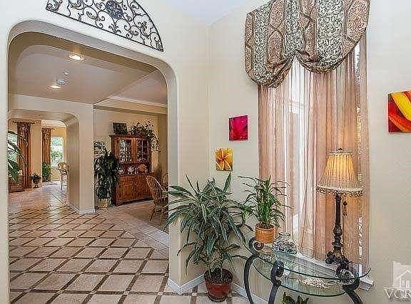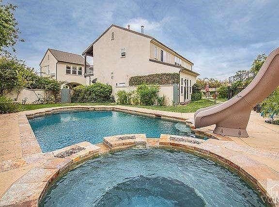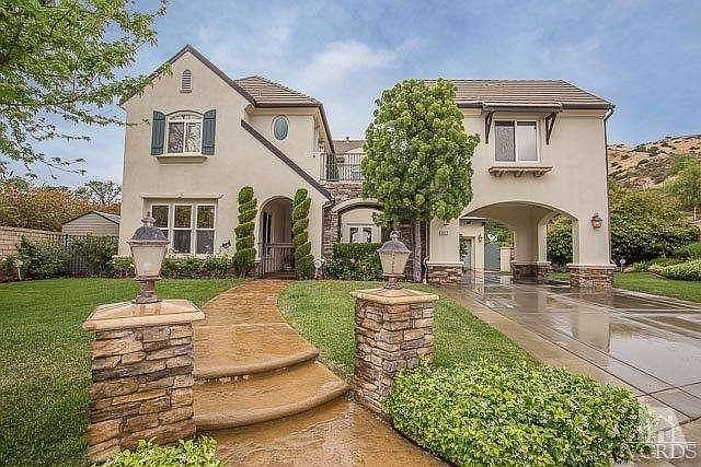 Incredible Silverthorne Plan 6 NE Simi Valley home! Features include 5 bedrooms, 4 bathrooms, a romantic MBR w/walk-in closet, steam shower, oval tub, sitting area w/FP & balcony, exercise room/office; downstairs bedroom/office & gourmet granite island kitchen w/full splash, stainless top-of-the-line appliances, dual load dishwasher, double oven w/warming drawer, huge walk-in pantry, breakfast bar, nook, & desk area w/wine rack. FR w/FP & media center. FDR w/French doors leading to courtyard area, LR, downstairs game room off the garage, & upstairs laundry room w/sink. Custom paint, travertine flooring throughout, upgraded carpeting, window treatments, ceiling fans, dual-zoned heating & A/C, & a 2-car garage w/overhead storage. The backyard displays 3 separate yards w/fenced black bottom pool/spa, covered patio, custom landscaping, possible RV parking, stamped & colored concrete & stonework, incredible views of the hills, all on a hilltop cul-de-sac location. Wow!