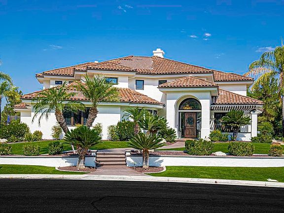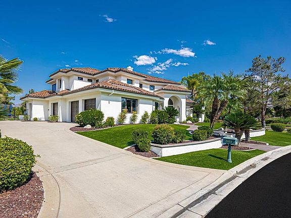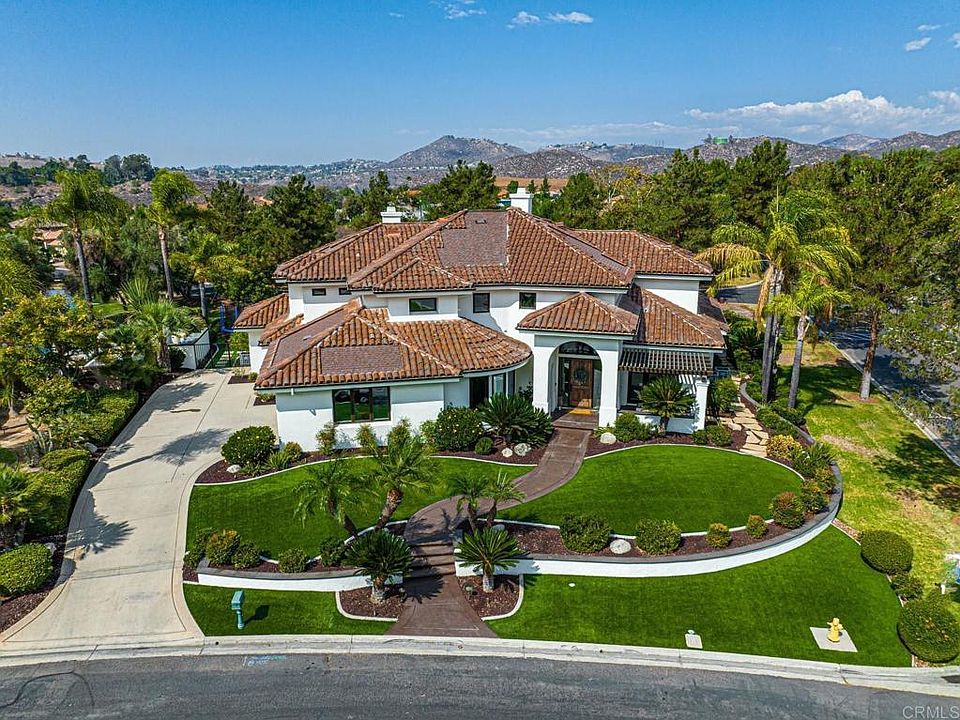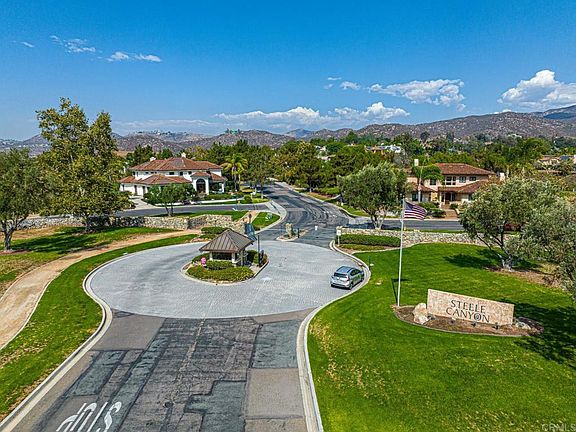 Gorgeous Custom Built Steele Canyon MEDITERRANEAN VILLA with golf course & mountain views from every window in the house! Located behind the private guarded gates on a corner lot with lush landscaping and a private setting! Enter this stunning Estate through the hand CARVED MESQUITE ENTRY DOOR to be greeted with luxurious finishing & modern designed floorplan! Great room style living offers a stunning kitchen that opens up to your living room area & highlighted with a floor to ceiling sandstone fireplace accented with maple inlay ceiling finish! Gourmet kitchen offers maple cabinets, granite counter tops, large center island with bar-stool seating, sub-zero refrigerator, SS Appliances & huge walk-in pantry! Private Elegant formal dining room boasts buffet cabinet serving area that opens up to your courtyard area with water feature for your special dinners. Billiard room features a built-in bar with granite counter, fridge, TV, Pool table & top of the line In-home stereo system with separate zonings for the entire house! The entire home has 9 French doors that open up to your outdoor living area to make for the perfect indoor/outdoor lifestyle! Use the elevator or the curved travertine stairway with wrought iron railing to access the two upstairs bedrooms and large landing area overlooking the great room! Private master-suite offers separated seating area w granite fireplace, large balcony overlooking the lakes & golf course, huge WALK-IN CLOSET & stunning master bath w walk in shower! Tesla Solar system w battery, sparkling pool w jacuzzi, BBQ station, 3 car garage plus mini golf cart garage & so much more! This one-of-a-kind home was BUILT BY PAT SIMMONS and WILL TRULY TAKE YOUR BREATH AWAY.
